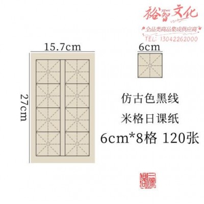一得阁竖版日课宣纸半生熟米字格方格状元笺信笺空白宣纸毛笔小楷大楷临摹字帖仿古黑线书法纸6cm*8格/120张 (SKU:yzwhyp920142