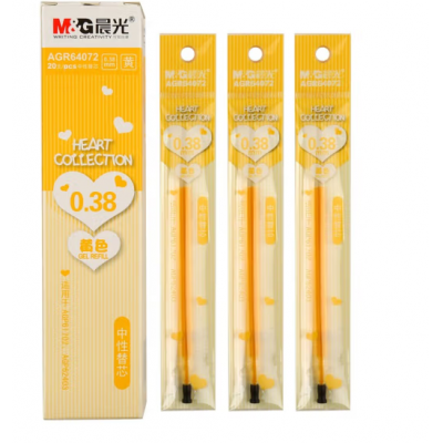 晨光(M&G)AGR64072彩色全针管替芯/笔芯 0.38mm (20支装)黄色