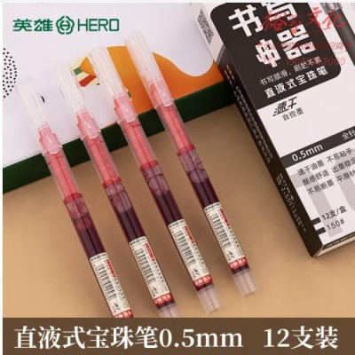 英雄0.5mm红色直液式走珠笔 速干直液式中性笔 水笔全针管学生办公用品1开学文具12支装 (SKU:yzwhyp920433
