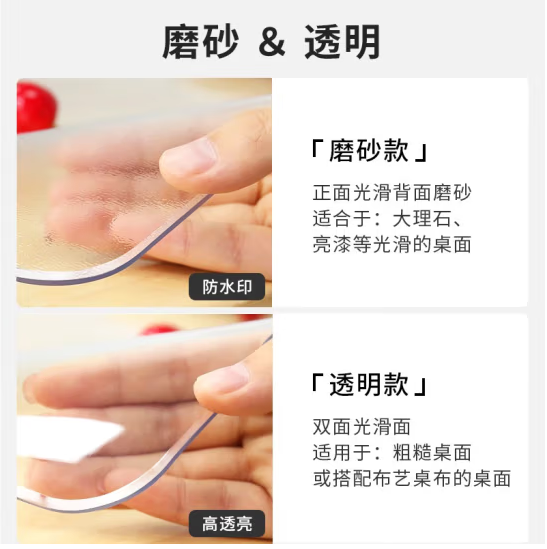 首页 > 装具 > 台布(桌布) > 钟爱一生(CHERISHES LIFE)桌垫透明餐桌布防水防油桌面垫PVC软玻璃茶几垫水晶板台面垫抗菌 升级食品级 无味磨砂3.0mm足厚 60*120cm (SKU:yzwhyp920628