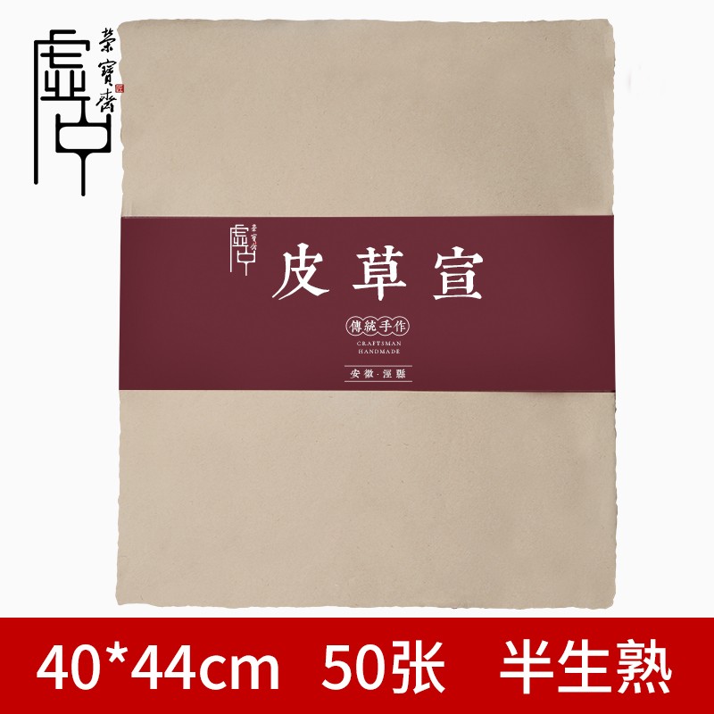 荣宝斋 宣纸 仿宋元明清古纸书画毛笔手工半生熟楮皮草毛边纸复古纸 50张皮草宣40cm*44(SKU:yzwhyp920956