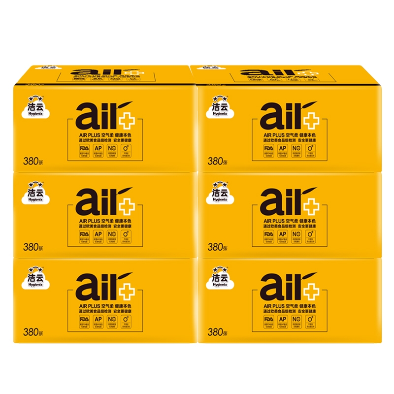 洁云 平板纸 AIR Plus空气柔380张本色平板卫生纸 6包装(新老包装随机发货)(SKU:yzwhyp921878