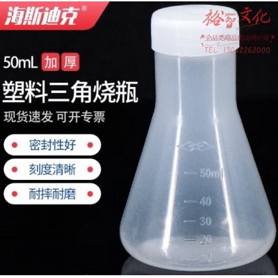 海斯迪克 HKCL-506 塑料三角烧瓶 直口加盖 带刻度锥形瓶平底试剂瓶(单拍不发) 50ml(SKU:yzwhyp922871
