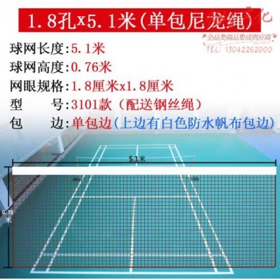 便携式羽毛球网标准网场地网室外内比赛羽球网拦网 1.8cm网孔送钢丝绳 手提包5.1米单包边 (SKU:yzwhyp923884