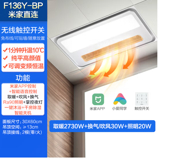 欧普照明(OPPLE)大功率风暖浴霸暖风机浴室取暖器集成吊顶恒温F136(SKU:yzwhyp924095