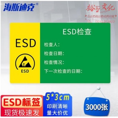 海斯迪克 ESD静电检测标签 铜版纸不干胶贴纸标签 5*3cm(不覆膜) 3000张/份 HKT-227 (SKU:yzwhyp924567