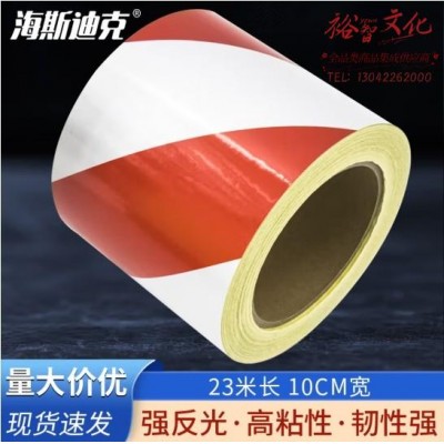海斯迪克 反光警示胶带(红白双色1卷)10CM*23M 夜间交通安全警示车贴地贴 PET反光膜 HKJD-007 (SKU:yzwhyp924658