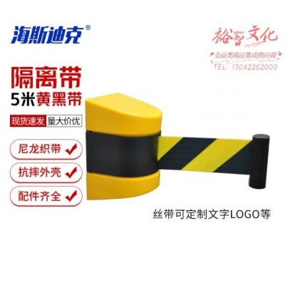 海斯迪克 可伸缩黑黄警戒带 靠墙式伸缩头 电梯口商场收银台隔离带安全护栏 5米 HKW-160 (SKU:yzwhyp924659