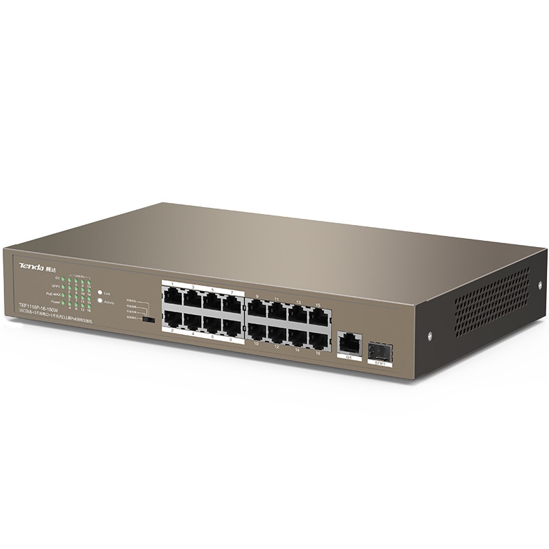 腾达(Tenda)TEF1118P-16-150W 16口百兆智能PoE供电交换机 企业工程监控 网络分线器(SKU:yzwhyp924831
