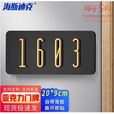 首页 > 建筑建材 > 其他防护用品 > 海斯迪克 亚克力门牌号码牌 家庭入户门号标识门贴 20*9cm横款金色 HKL-1015 (SKU:yzwhyp924888