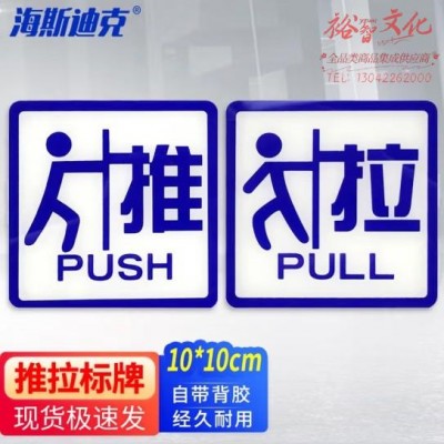 海斯迪克 亚克力推拉门贴 玻璃门提示贴 10*10cm警示牌左右移门标识贴 推拉S11款 HKT-193 (SKU:yzwhyp924938