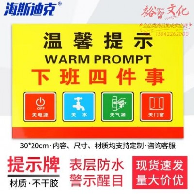 首页 > 建筑建材 > 其他防护用品 > 海斯迪克 安全标识牌 1张 温馨提示下班四件事 款式一 30*20CM 不干胶提示贴 HKL-58 (SKU:yzwhyp924947