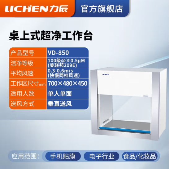力辰科技(lichen)实验室无菌无尘超净处理操作净化工作台QS认证所需超净工作台 VD-850 垂直送风 (SKU:yzwhyp925140
