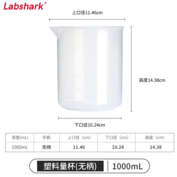 首页 > 仪器仪表 > 生物、医学样品制备设备 > 比克曼生物 LABSHARK 塑料量杯带刻度加厚具嘴透明大容量带柄无柄PP材质耐热耐高温实验室用品【无柄】1000mL 1个(5个起订) (SKU:yzwhyp925145