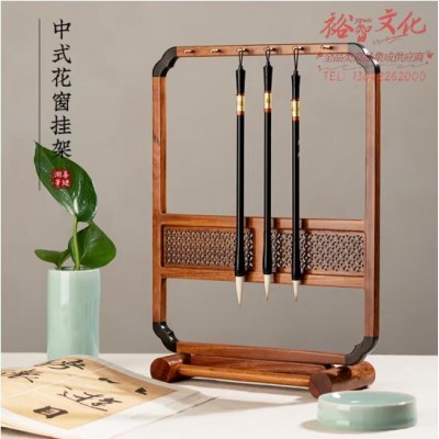 張小鳳 新中式毛笔架梅花型窗花式毛笔挂架子铜挂12针实木笔挂创意文房摆设博古架 中式花窗挂架 (SKU:yzwhyp925292