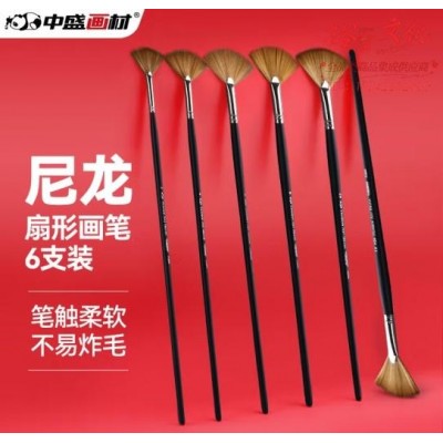 中盛画材 6支尼龙扇形笔水粉画笔水彩笔油画笔套装丙烯颜料画板刷子艺考鱼尾尼龙笔 (SKU:yzwhyp925380