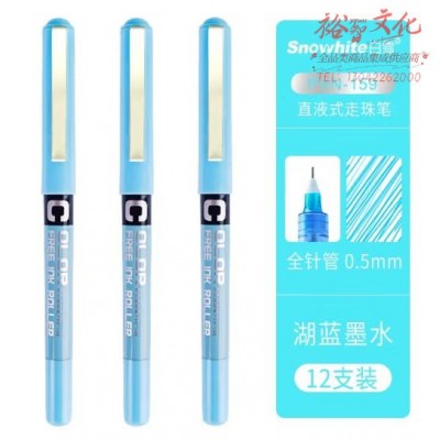 白雪(snowhite) 直液式水性走珠笔中性笔0.5mm彩色签字笔PVN159 湖蓝色12支/盒 (SKU:yzwhyp927176