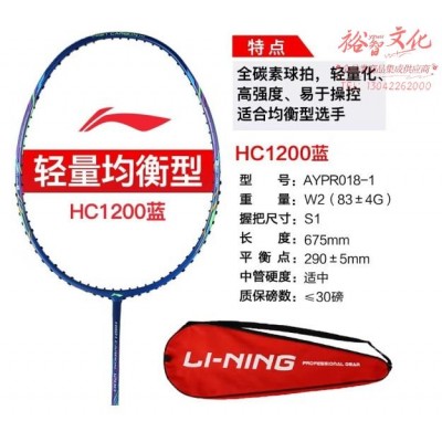 李宁(LI-NING)羽毛球拍全碳素单拍男女训练超轻高碳羽拍AYPR018(HC1200)蓝色 已穿线(SKU:yzwhyp927695