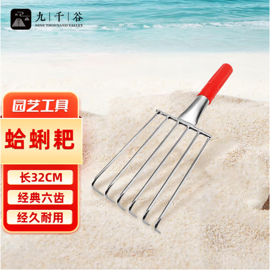 九千谷1540赶海工具 海边挖蛤蜊抓螃蟹神器沙滩耙儿童装备挖沙6齿耙子 (SKU:yzwhyp927947