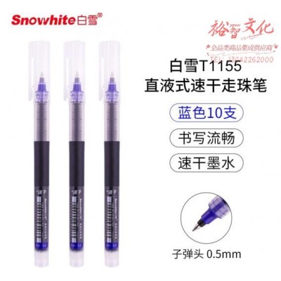 白雪(snowhite)T1155中性笔简约无印风0.5mm大容量直液式速干走珠签字笔办公用品 蓝色10支 (SKU:yzwhyp928831