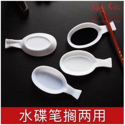 御宝阁 多功能创意塑料墨碟水碟小墨蝶画国画调色盘水写布专用毛笔笔搁笔洗盛墨汁墨水文房四宝书法用品 白色水碟(10个装) (SKU:yzwhyp929065