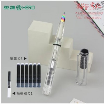 英雄(HERO)钢笔359 正姿 透明杆 EF尖薄厚片工艺学生练字钢笔 (附加6支墨囊颜色随机)铱金钢笔签字笔 (SKU:yzwhyp929080