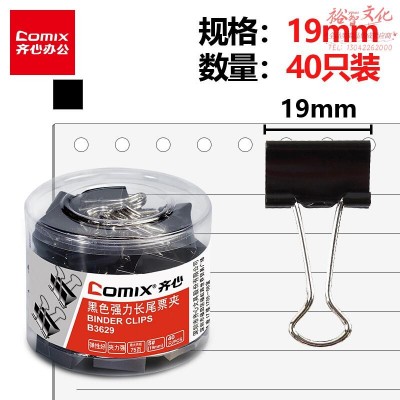 齐心(COMIX)40只19mm黑色金属长尾票夹B3629(SKU:yzwhyp929111