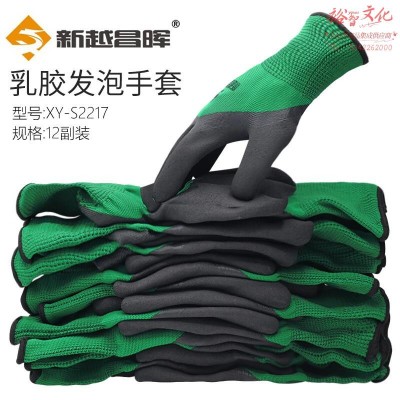 新越昌晖乳胶发泡王劳保手套 浸胶挂胶防滑耐磨涂胶胶皮工地防护手套12副/均码 XY-S2217(SKU:yzwhyp929264