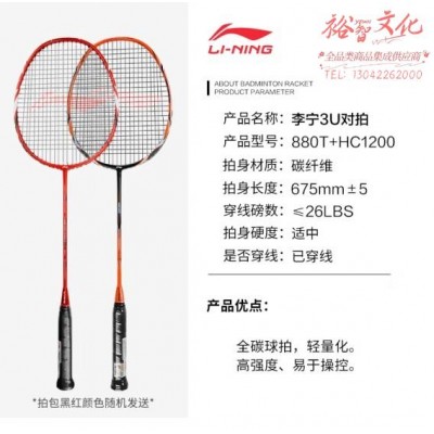 李宁(LI-NING)羽毛球拍全碳素HC1200橙色 男女进阶3UA880T红色(已穿线)(SKU:yzwhyp929613