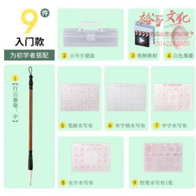御宝阁毛笔套装水写布毛笔字帖儿童初学者入门小学生毛笔楷书书法练习纸仿宣纸字帖楷书书法练习纸 收纳盒水写布入门9件套 (SKU:yzwhyp929651
