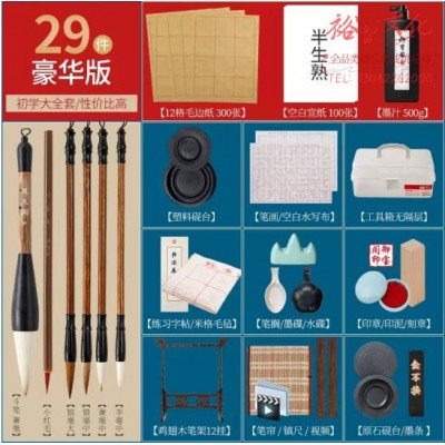 御宝阁 文房四宝毛笔套装初学者入门小学生书法宝笔墨纸砚毛毡砚台带盖字帖水写布笔架墨碟毛笔练字纸 豪华29件套【收纳盒 笔架】 (SKU:yzwhyp929652