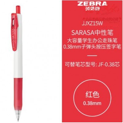 斑马牌(ZEBRA)中性笔 0.38mm子弹头按压签字笔 大容量学生办公走珠笔 JJXZ15W 红色 (SKU:yzwhyp930403