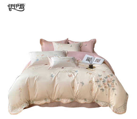 伊伊爱 翩翩起舞刺绣100支全棉四件套(单位:套) 翩翩起舞-雪粉色 200*230cm/DTJ0KL02201661(SKU:yzwhyp930620