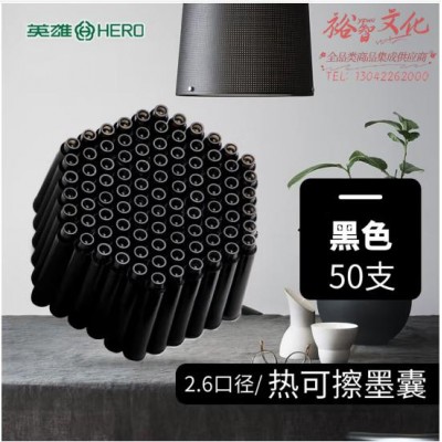 英雄(HERO)热可擦墨囊 2304RT小学三年级练字可替换热敏摩易擦 2.6mm口径 50支装 黑色 (SKU:yzwhyp930829