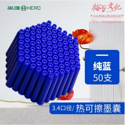 英雄(HERO)热可擦墨囊 2103RT小学三年级练字可替换热敏摩易擦 3.4mm口径 50支装 蓝色 (SKU:yzwhyp930831