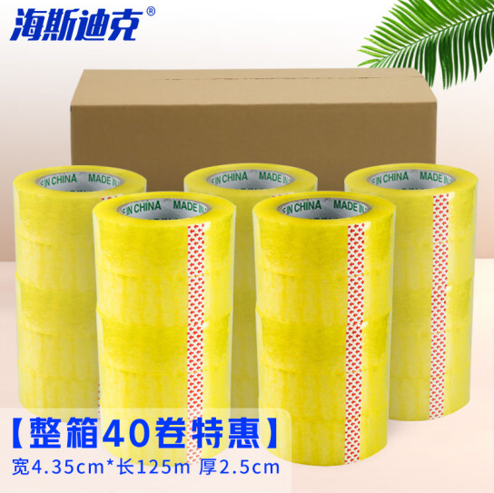 海斯迪克 打包封箱胶带 透明胶带 宽4.35cm*长125m 厚2.5cm 40卷 HKQS-201(SKU:yzwhyp932060