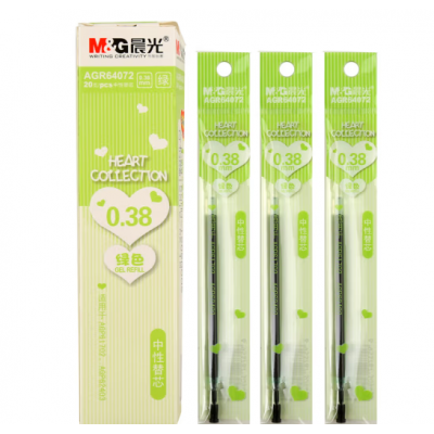 晨光彩色中性笔芯0.38mm全针管替芯水笔笔芯混合装彩色替芯学生 绿色 20支装