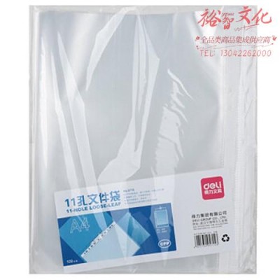 得力(deli)A4文件夹带孔文件袋资料夹快劳夹两孔活页夹 5715 11孔文件袋(100只/包)(SKU:yzwhyp932287