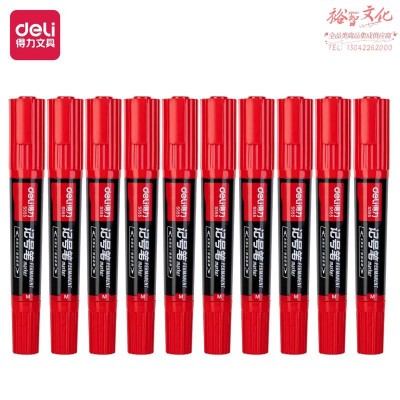 得力(deli) 大双头多用记号笔签字笔 勾线笔会议笔马克笔 10支/盒 红色 S555 双头加粗款(SKU:yzwhyp932585