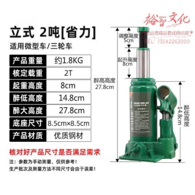 首页 > 建筑建材 > 五金附件 > 惠利得 立式油压千斤顶起重工具车用手摇车载汽车换胎维修液压千斤顶 2吨 (SKU:yzwhyp932761