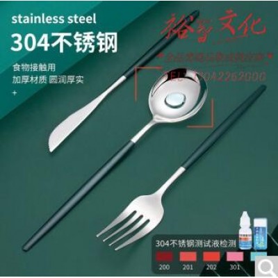 广意 304 不锈钢牛排刀叉勺 北欧西餐餐具 加长加厚 简约 西餐刀叉勺三件套(墨绿色) GY7659SKU:yzwhyp933688