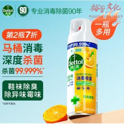 滴露(Dettol)消毒喷雾 阳光柑橘454ml 厕所衣物消毒马桶鞋子除臭杀菌空气清新剂 (SKU:yzwhyp934151