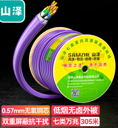 山泽(SAMZHE) 七类双屏蔽网线 低烟无卤无氧铜箱线 CAT7类工程家装万兆网络宽带线 305米紫色 730SZP (SKU:yzwhyp934399