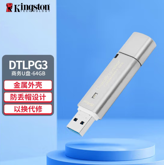 金士顿(Kingston)64G USB3.0 U盘 DTLPG3 256位AES硬件金属加密 (SKU:yzwhyp934511