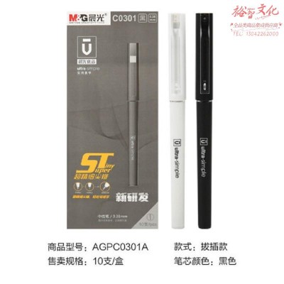 晨光 AGPC0301 优品中性笔学生办公水笔插拔0.38mm签字笔黑色 10支装(SKU:yzwhyp934917