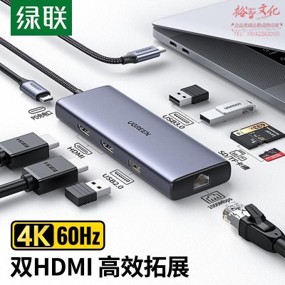 绿联Type-C扩展坞 USB-C转双HDMI转换器千兆有线网卡网线口转接头分线器适用苹果华为iPad拓展90119(SKU:yzwhyp935046