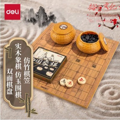 得力(deli)围棋中国象棋套装双面棋盘 多功能棋五子棋 仿竹棋篓 6743 (SKU:yzwhyp936402