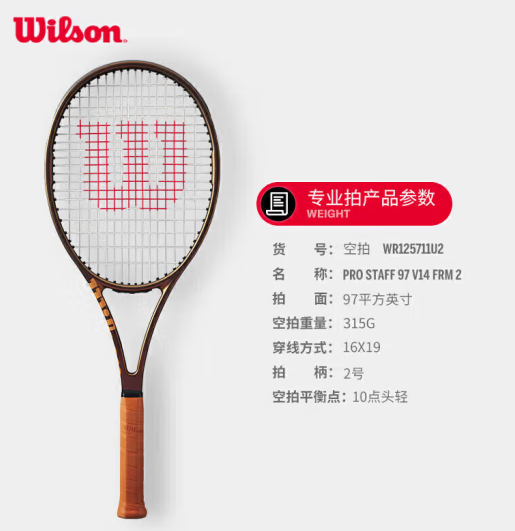 Wilson威尔胜 全碳素专业网球拍郑钦文同款 WR125711U2 PS 97 V14 (SKU:yzwhyp938124