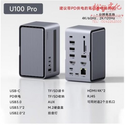 首页 > 信息化设备 > 集线器 > 海备思扩展坞桌面拾音拓展坞Type-C转换器苹果Mac雷电4接口USB扩展M.2硬盘盒笔记本适用 U100 Pro (SKU:yzwhyp938288