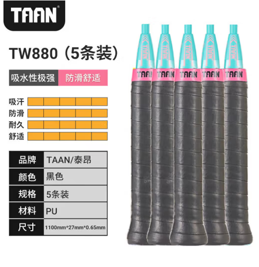 TAAN泰昂 羽毛球拍网球拍手胶吸汗带防滑微粘性 TW880黑色5条装 (SKU:yzwhyp938340